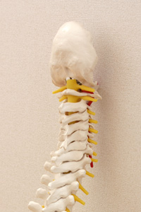 首の骨は縦に七つ積み上げられた状態になっており、その1つ1つの骨の間には椎間板という衝撃などを吸収してくれるクッションの役割をしているものがあります。